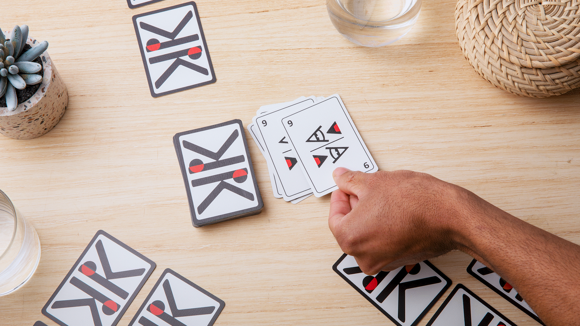 KOMBIO has a classic card game feel with a modern twist. At the start of each round, players are dealt four cards facedown and take turns drawing, playing and discarding.